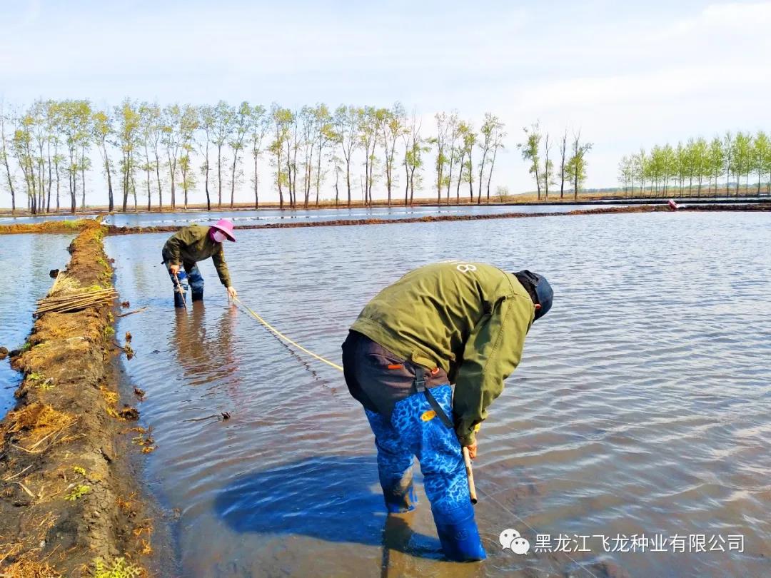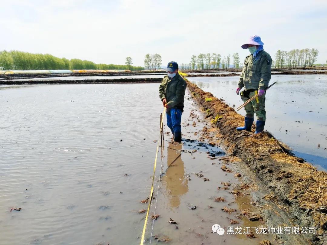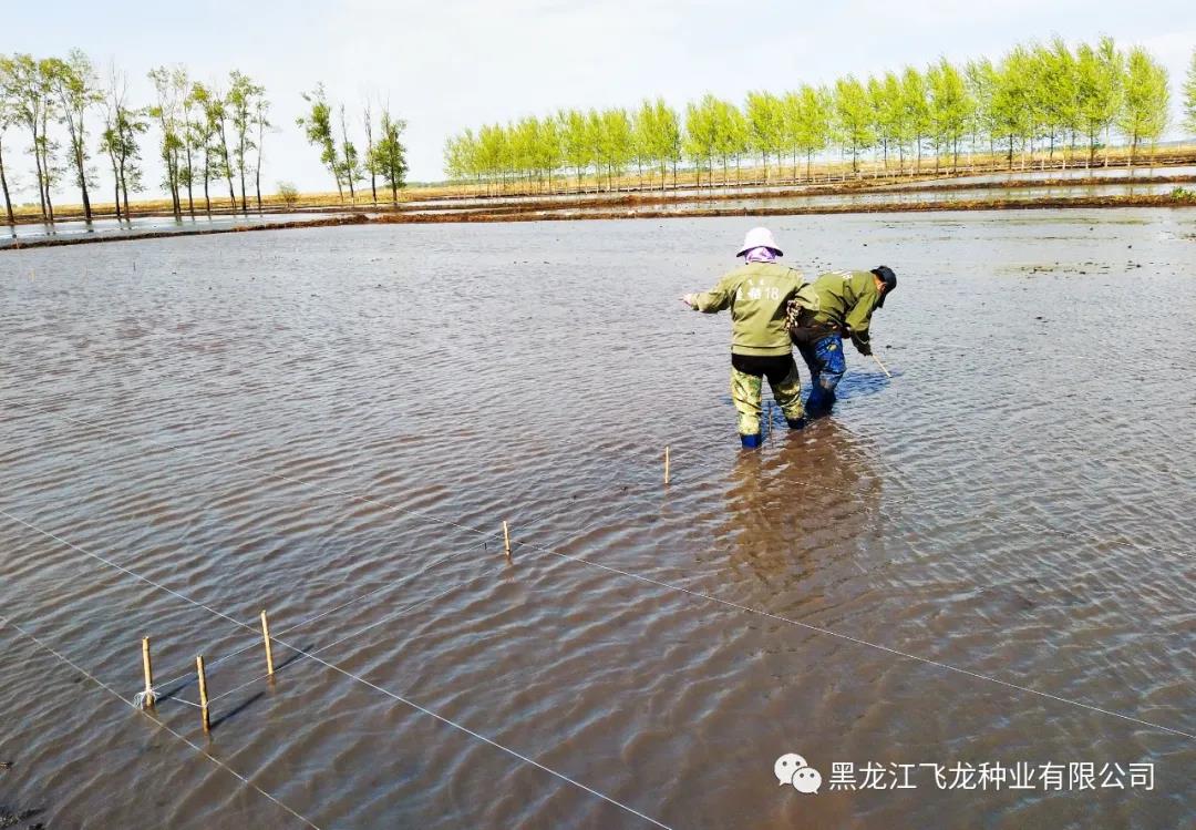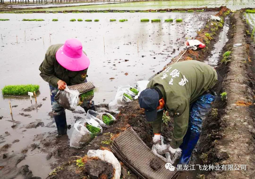 飛龍種業(yè)水稻試驗站面積10畝,15人的隊伍,在經(jīng)過前期的苗床選地、整地作廂、種子處理以及肥料管理等育秧工作后,現(xiàn)階段主要工作為秧苗移栽。