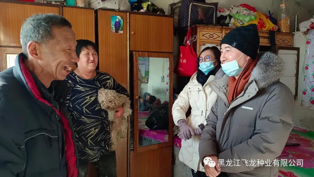 2022年1月25日,飛龍種業(yè)林志達(dá)總經(jīng)理以及員工逐一深入到福利鎮(zhèn)、集賢鎮(zhèn)、升昌鎮(zhèn)、永安鄉(xiāng)、興安鄉(xiāng)、腰屯鄉(xiāng)馬清祥、王喜軍、呂海濱等11戶群眾家中,把年貨送到貧困群眾手中,并耐心地詢問(wèn)他們春節(jié)年貨置辦得怎樣、生活上還有哪些困難等,同時(shí)提前祝福他們節(jié)日快樂(lè),讓他們從心里感受到全社會(huì)對(duì)困難群眾的關(guān)愛(ài)之情。除了米面油、水果、醬油醋、深海刀魚(yú)和瓜子花生糖果等年貨以外,還根據(jù)不同需求送去了衣服、鞋子、被褥等。