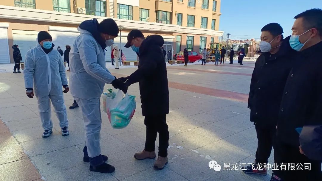 黑龍江飛龍種業(yè)有限公司總經(jīng)理林志達(dá)看到眼里,疼在心里。緊急調(diào)動人手,將集賢縣內(nèi)可購買的4550副加熱“暖寶寶”鞋墊,于11月30日,親自提著袋子迎著寒風(fēng)送往縣疫情指揮部,送到一個又一個卡口、核酸檢測點位的工作人員手中,助力我縣疫情防控工作。